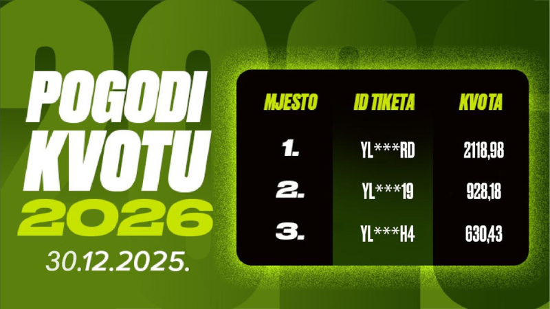 Pogodi kvotu najbližu 2026 i osvoji 500€ FREE BET SVAKOG