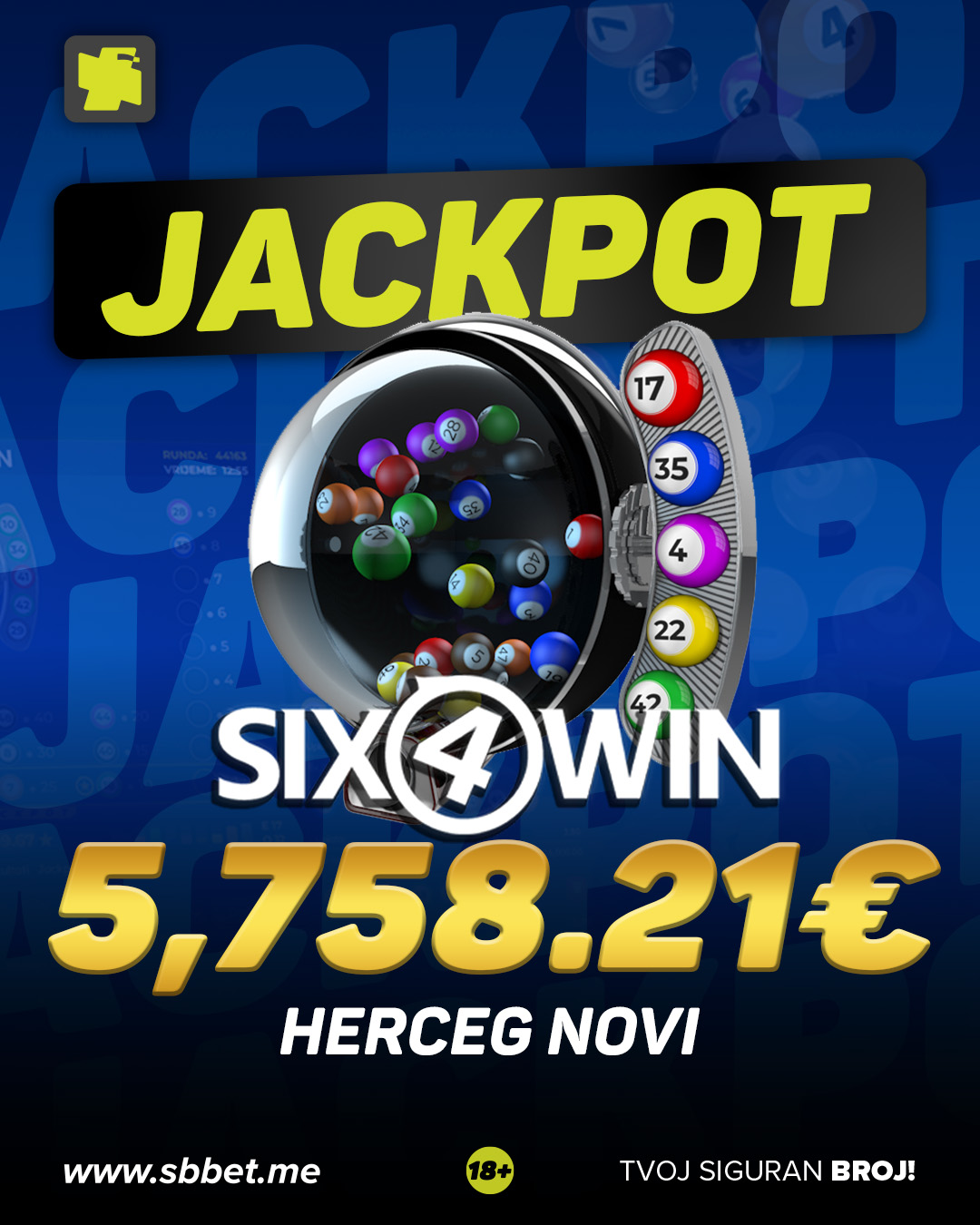 Igra brojeva Six4Win donijela je igraču iz Herceg Novog fanstastičan JACKPOT dobitak u iznosu od 5,758.21€ 💸💥