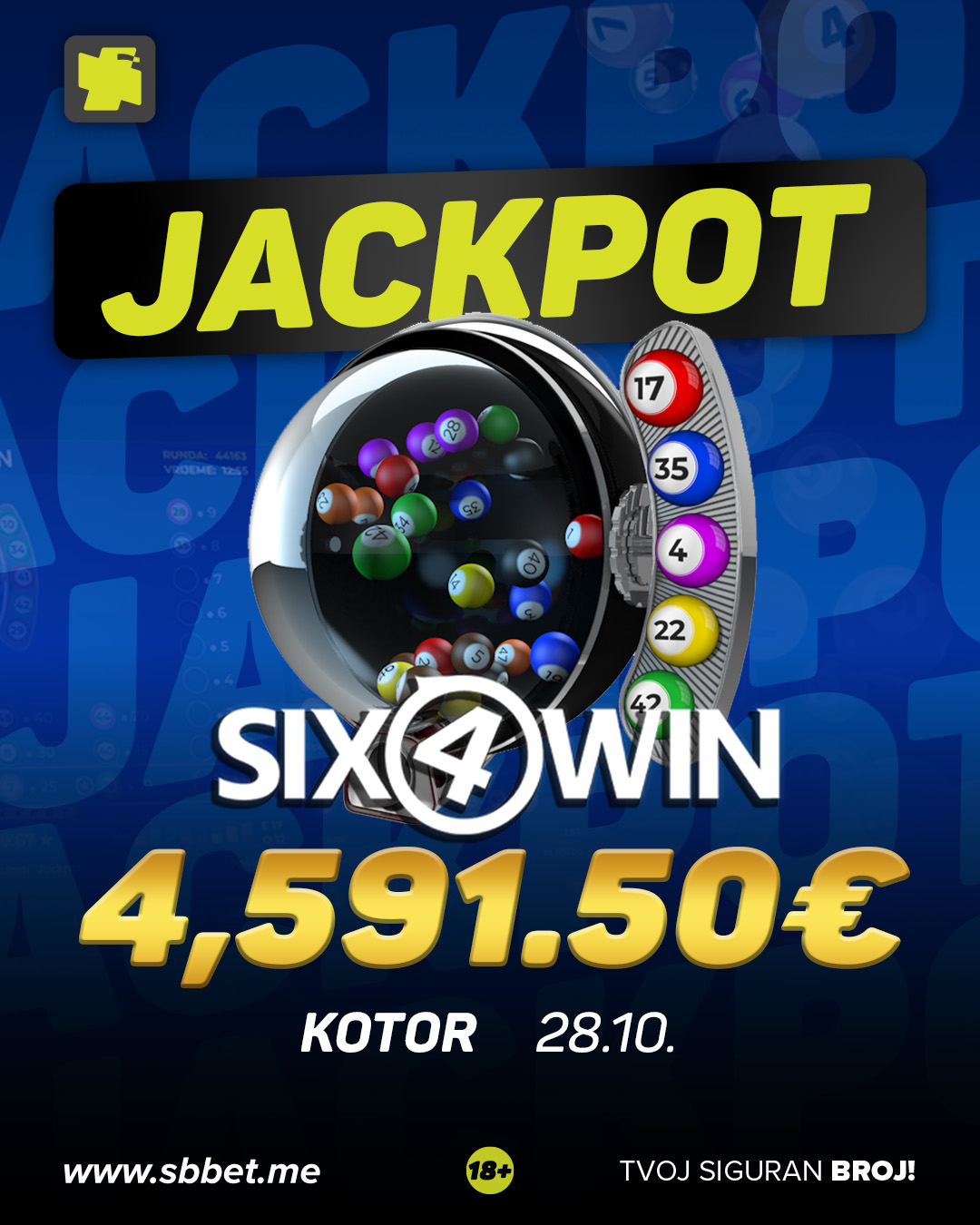 U Kotoru osvojen Six4Win Jackpot – 4,591.50€ 💸💥